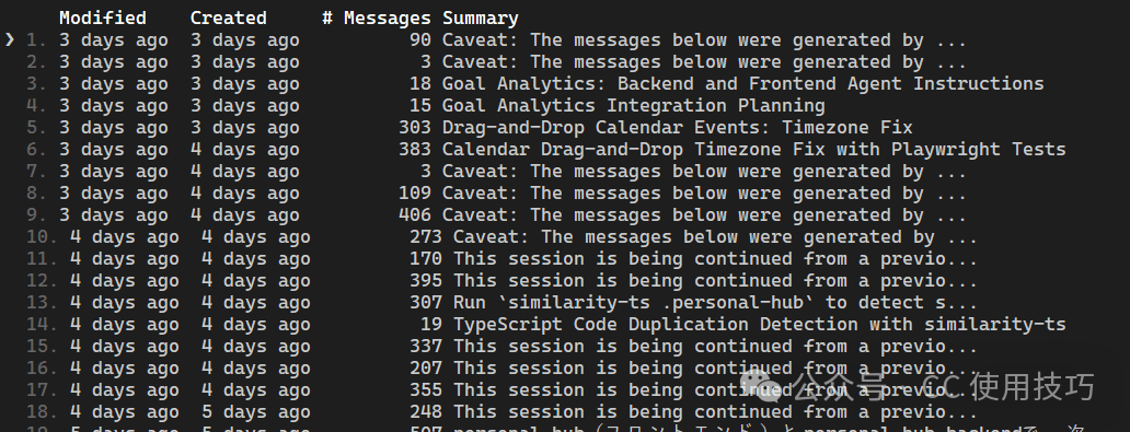它能清晰地列出你所有过去项目的 Claude Code 对话历史