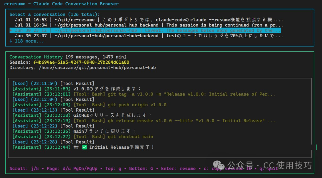 npm install -g @sasazame/ccresume运行完命令后,只需重启终端,就大功告成了!